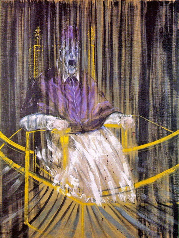 La obra de Bacon es la obra de un ser abandonado por su familia, homosexual, enfermizo, políticamente comprometido, y anticlerical. Su padre era una persona de grandes principios, es decir, muy respetuoso con la sociedad, es decir, temeroso de la sociedad. Nunca hubiera hecho nada fuera de las normas sociales y no permitía que su hijo hiciera nada que no pudiera ser digno de la aceptación general: El valor social como principio del honor es un error, pero la trasgresión como principio del arte constituye otro error no menos grave. Los principios hemos de buscarlos en el sujeto, ni en la afirmación ni en la negación de esa sociedad. Estos datos biográficos están recogidos en la mayoría de las obras sobre este artista. Y sin embargo no se ha llegado a plasmar aquello que es tan evidente: que ningún artista puede aportar nada distinto de lo que ya lleve dentro. Bacon fue una persona incomprendida por su familia y por la sociedad. También se siente frustrado porque no se acaban de implantar sus propuestas para sustituir todas las estructuras conservadoras que son el origen de sus males. La obra de este artista no puede ser otra cosa más que la expresión de sus sentimientos.